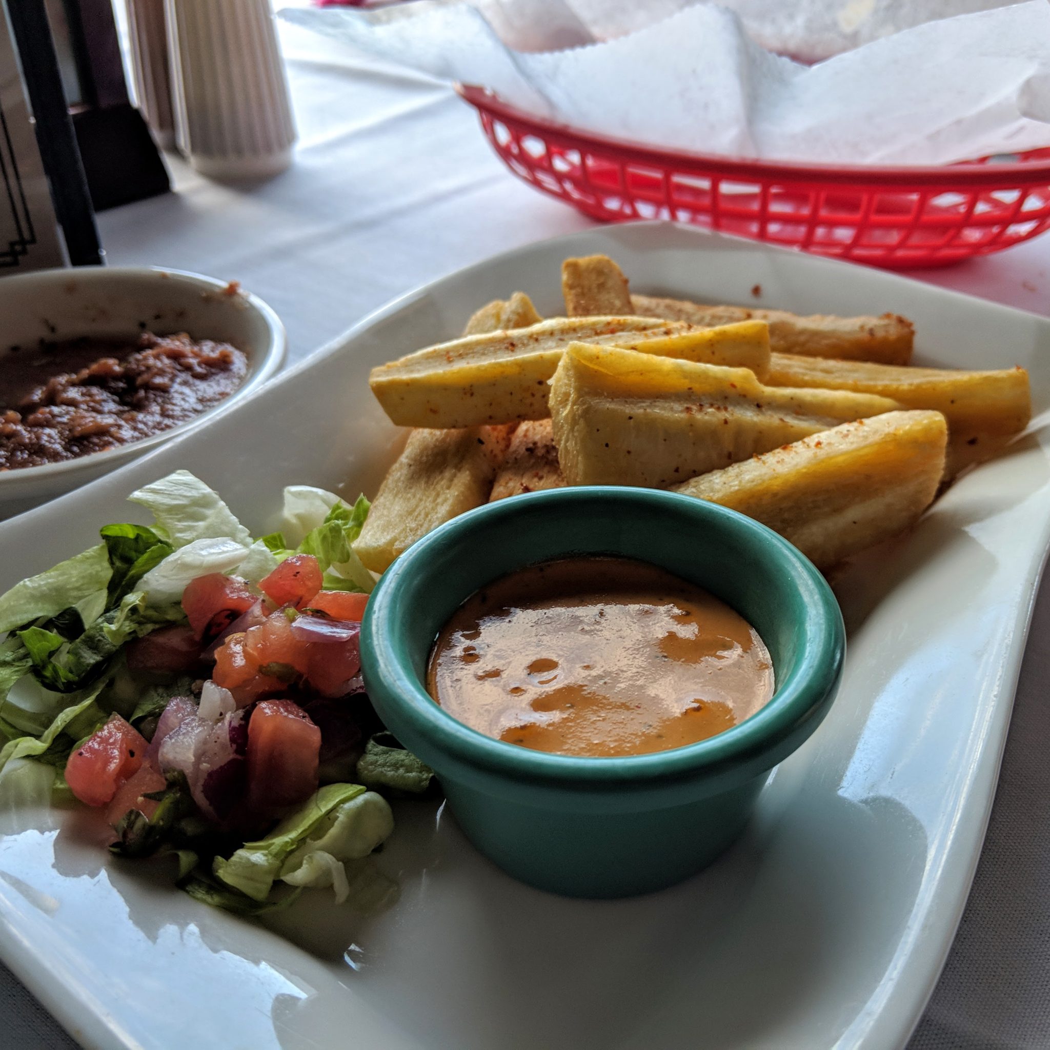Don Moncho’s is in an ideal location overlooking the Rappahannock River with Chatham Manor in the distance. (Today it looked especially cool as the river is still mostly frozen!). Their outdoor patio will be really nice when the weather gets warmer. For lunch their menu was $10.18 for a two-course meal including an appetizer and an entree. We decided on tortilla soup and fried yuccas for the appetizer course. The soup was just okay, but the fried yuccas with chipotle dipping sauce really hit the spot! The kids meals were $5.95 and didn’t include anything but the plain quesadilla. For my entree, I went with the chicken tostadas, and my wife decided on the Caribbean chicken salad. Both of the entrees were a little underwhelming. The tostadas tasted fresh and had great presentation, but needed some more flavor. My wife really liked the salad, especially that the chicken was very flavorful. However, the salad was very small. The most disappointing thing about this visit was the service. There was only one waitress for all of the tables. She didn’t bring out chips and salsa until we asked and she never asked what we wanted to drink. Although, once we received the chips and salsa, they were excellent and included in the lunch price. I really hope they work on their service for future customers because I definitely see some potential here!